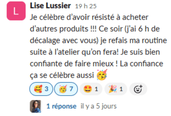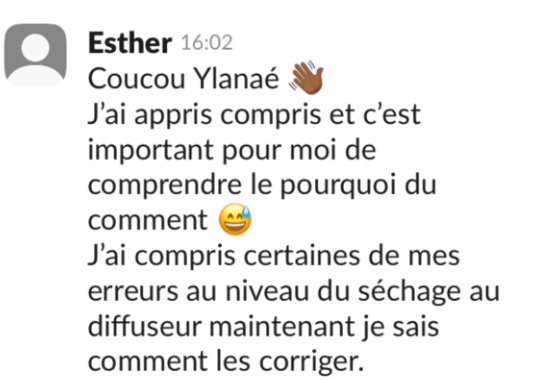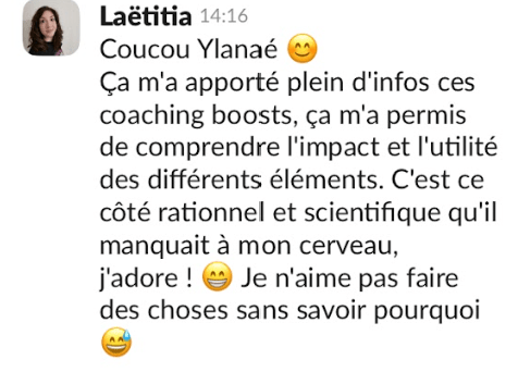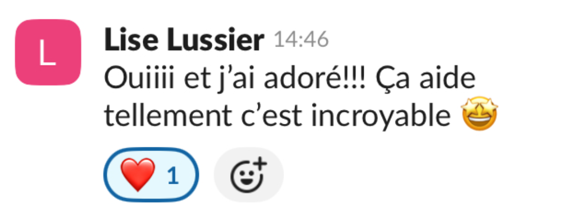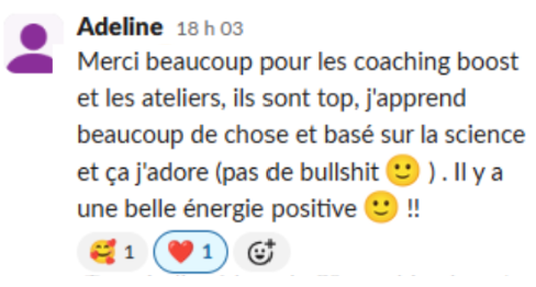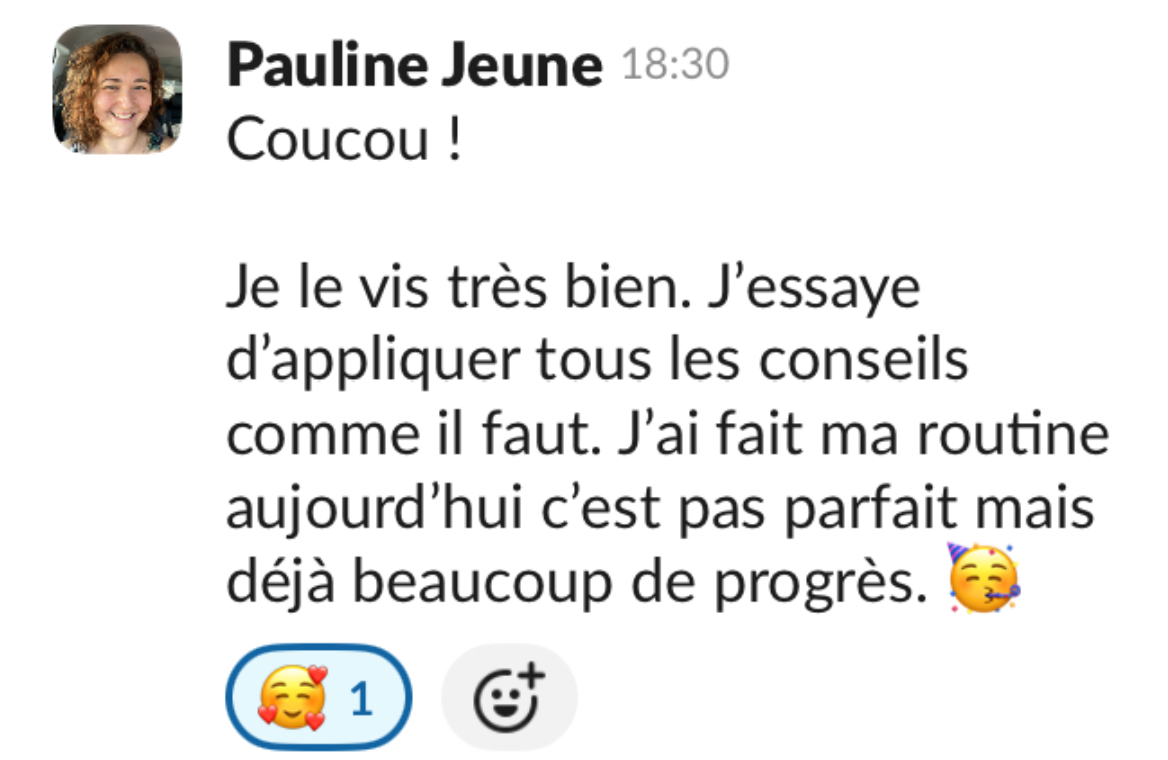 Pendant 15 jours, tu échanges dans un groupe Slack dédié.
