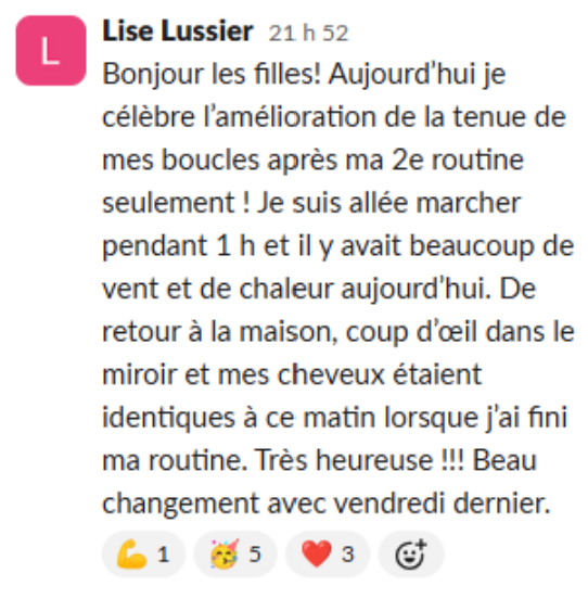 Du 16 au 30 Janvier 2026, au sein d’un groupe de femmes aux cheveux ondulés, bouclés, frisés, crépus, qui partagent les même problématiques de tenue.