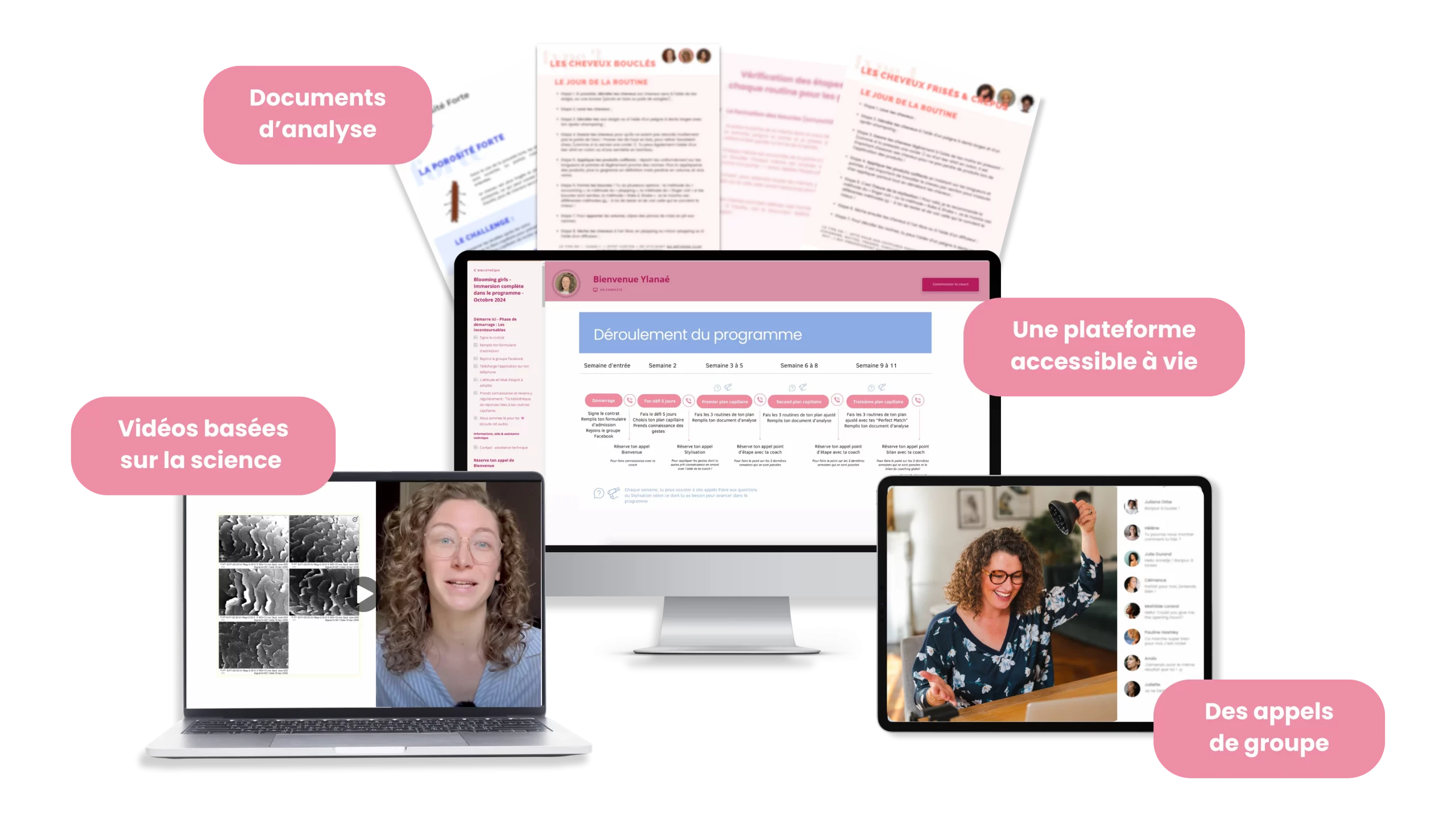 Avec Blooming Girls, je te fais une promesse : celle d’enfin comprendre ce dont tes propres cheveux ont besoin. Pour dire stop aux résultats aléatoires, arrêter de stagner et avoir de beaux cheveux plusieurs jours de suite, même une semaine après ton dernier shampooing. Grâce à une approche basée sur la science du cheveu, je te promets que tu vas :