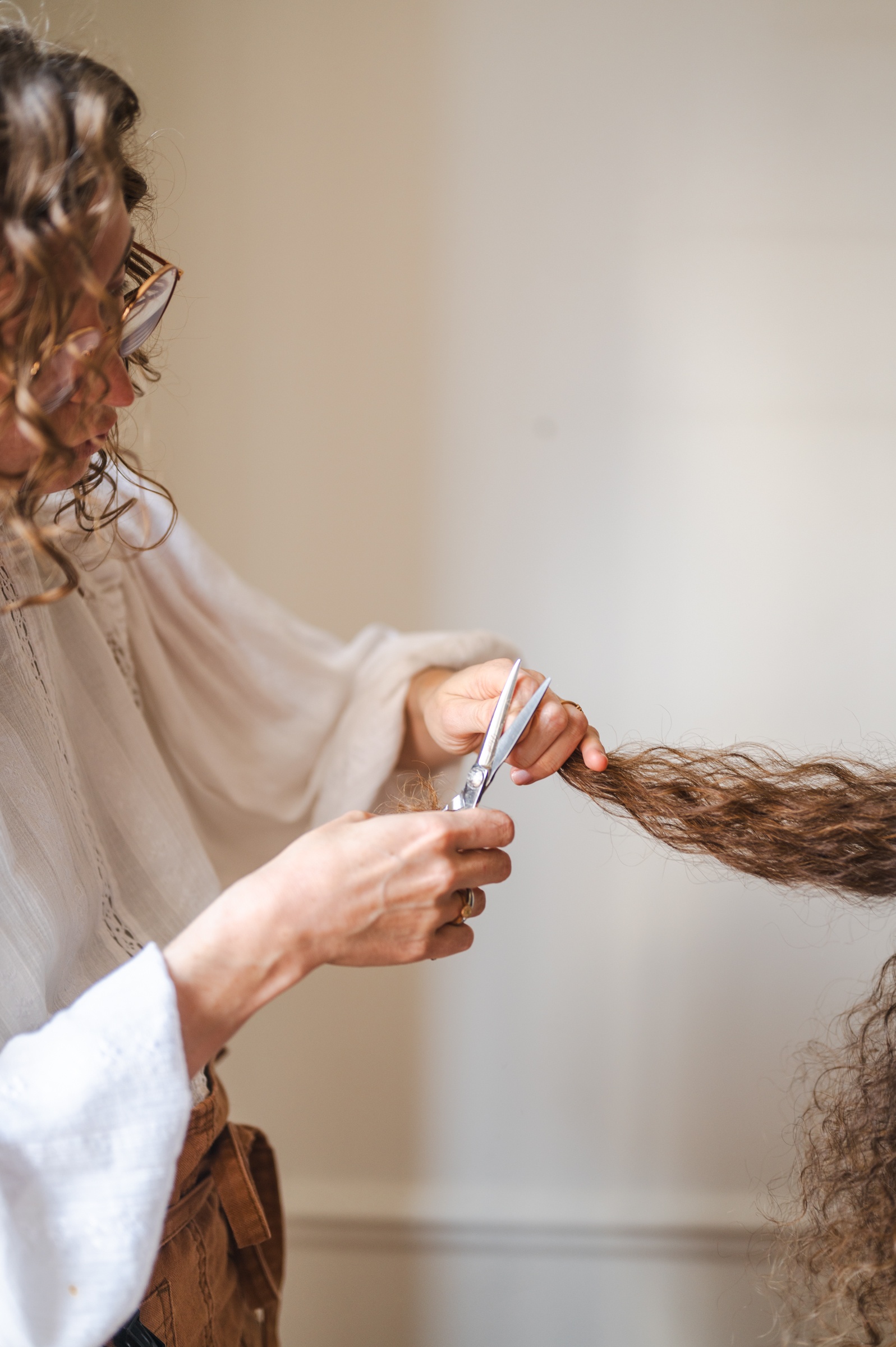 En France, très peu de coiffeuses sont réellement formées aux cheveux ondulés, bouclés, frisés et crépus. La majorité des coupes sont pensées pour des cheveux lisses, coupées mouillées, sans anticiper le rebond, ni la façon dont la boucle sera une fois sèche. Résultat : ça donne des effets "queue de rat", des "étages", un effet de transparence que tu détestes...Et des cheveux que tu remouilles à peine rentrée chez toi.