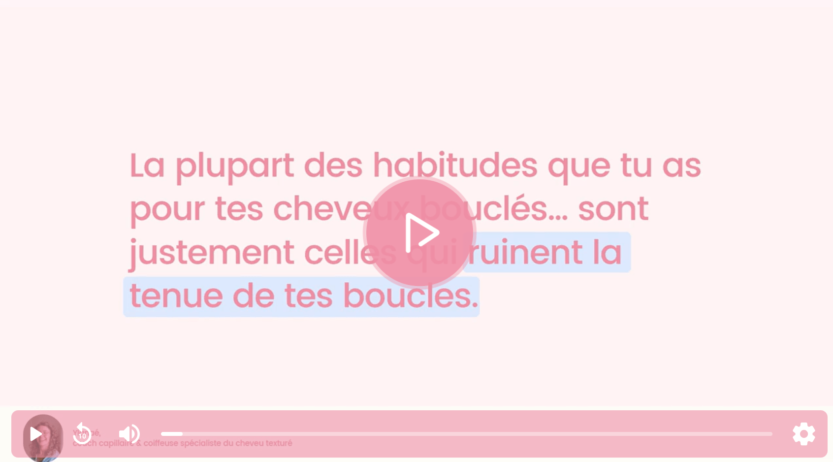Un cours spécial et inédit 100% basé sur la science du cheveu, pour toutes celles qui veulent comprendre pourquoi leurs boucles ne tiennent pas et connaître les étapes pour enfin se libérer de cette sensation d’être négligée au quotidien.