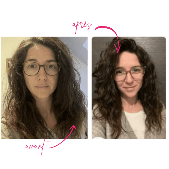Le problème, c’est qu’après avoir testé des centaines de produits et de routines « miracles » trouvées en ligne, la réalité est vite devenue frustrante. Des boucles mal définies, des frisottis à gogo, des cheveux secs ou bien très gras… et JAMAIS de cheveux bien coiffés pendant plus d’une journée.