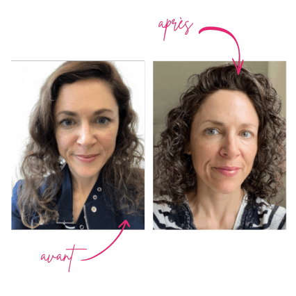 Transformation capillaire d'Amandine après un coaching pour cheveux bouclés